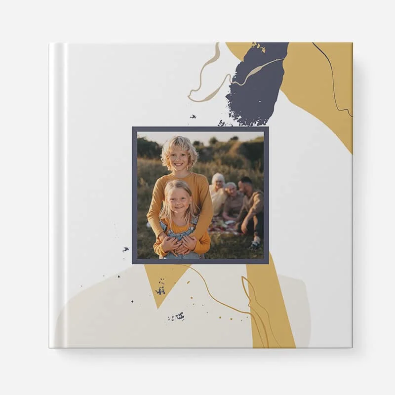 Odkrijte kako enostavno je oblikovati fotoknjigo z že izbrano predlogo. Abstraktna tema je primerna za vse, ki jim je všeč minimalističen slog in eksperimentiranje z barvami. Izberite želeni format, platnice in število strani ter začnite oblikovati svojo fotoknjigo.