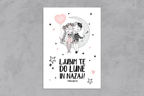 Ljubim te do lune in nazaj kartica v katero dodate svoje ime.