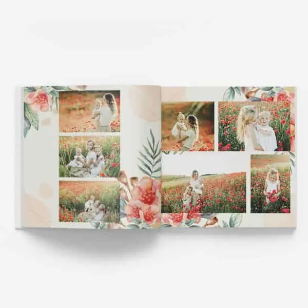 Odkrijte kako enostavno je oblikovati fotoknjigo z že izbrano predlogo. V tej predlogi vas na vsakem koraku spremljajo rožice, zato jo bo vesela vsaka gospodična ali gospa.