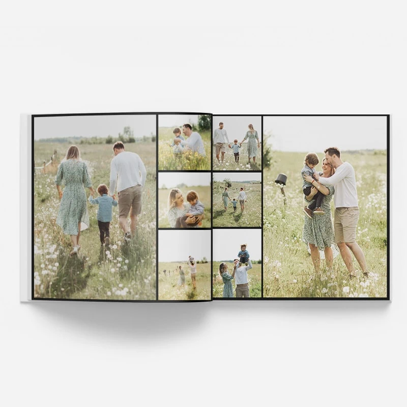 Eleganten ovitek za klasične fotoknjige velikosti 20 × 20 cm.
