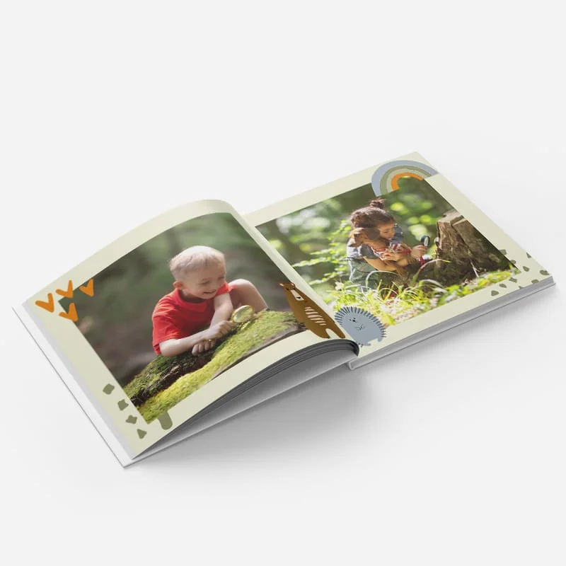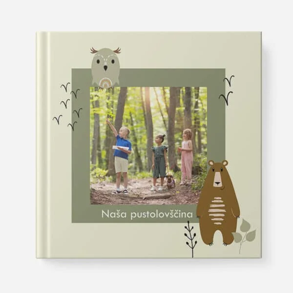 Odkrijte kako enostavno je oblikovati fotoknjigo z že izbrano predlogo. Izbrana tema je lahko primerna tako za razigrane otroke, kot za pustolovske družine, ki so rade v naravi, saj vsebuje pisane elemente simpatičnih gozdnih likov.  Izberite želeni format, platnice in število strani ter začnite oblikovati čisto svojo fotoknjigo.