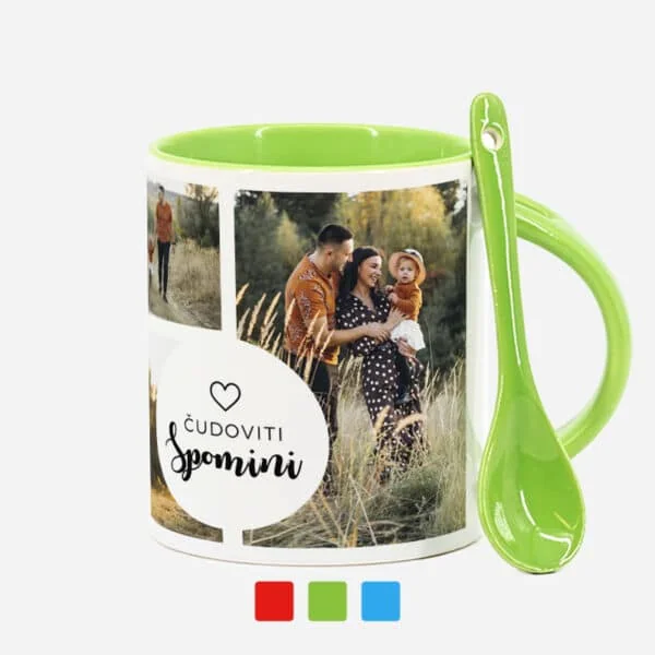 Keramičen lonček z žličko je oblikovan z estetskim in praktičnim namenom. Priloženo žlička se prilega v poseben predel, zasnovan v ročaju lončka. To omogoča enostavno shranjevanje žličke in preprečuje, da bi se izgubila ali umazala. Lonček je na voljo v treh različnih barvah: modri, zeleni in rdeči.
