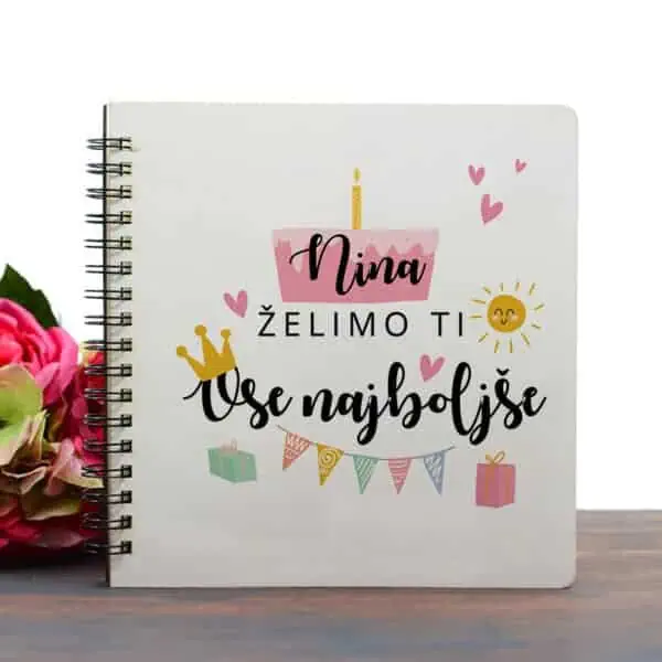 Lesen album z UV dotiskom na temo rojstnega dne. V spodnja polja vpišite podatke, kot dodatek pa lahko dodate tudi poljubno besedilo.
