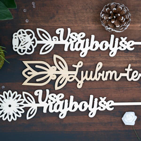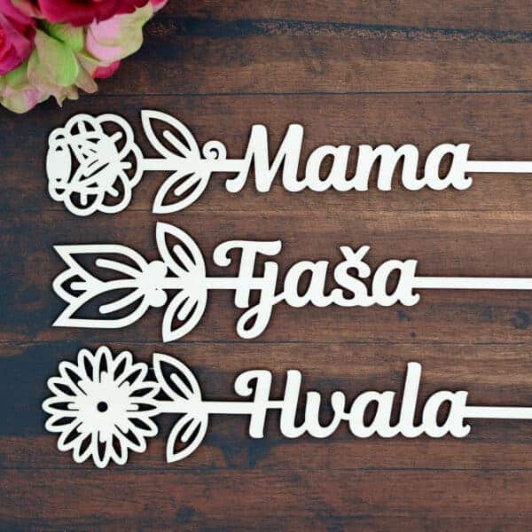 Izbrali ste leseno rožico s sporočilom, izdelano po meri. Določite obliko cvetka, kakšen napis želite na steblu, mi pa vam bomo rožico izdelali povsem po vaših željah.