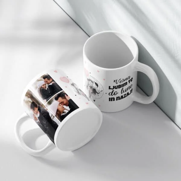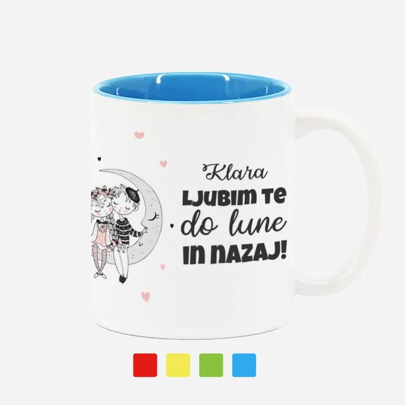Keramični lonček z barvno notranjostjo združuje možnost potiska fotografij, besedila, ilustracij, logotipov in poljubne grafike.