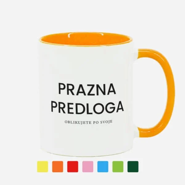 Keramični lonček z barvnim ročajem združuje možnost potiska fotografij, besedila, ilustracij, logotipov in poljubne grafike.
