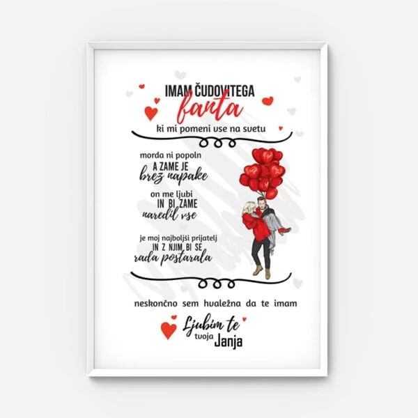 V kolikor bi želeli ljubezensko kartico opremiti z okvirjem, si lahko del naše ponudbe okvirjev ogledate: Tukaj.