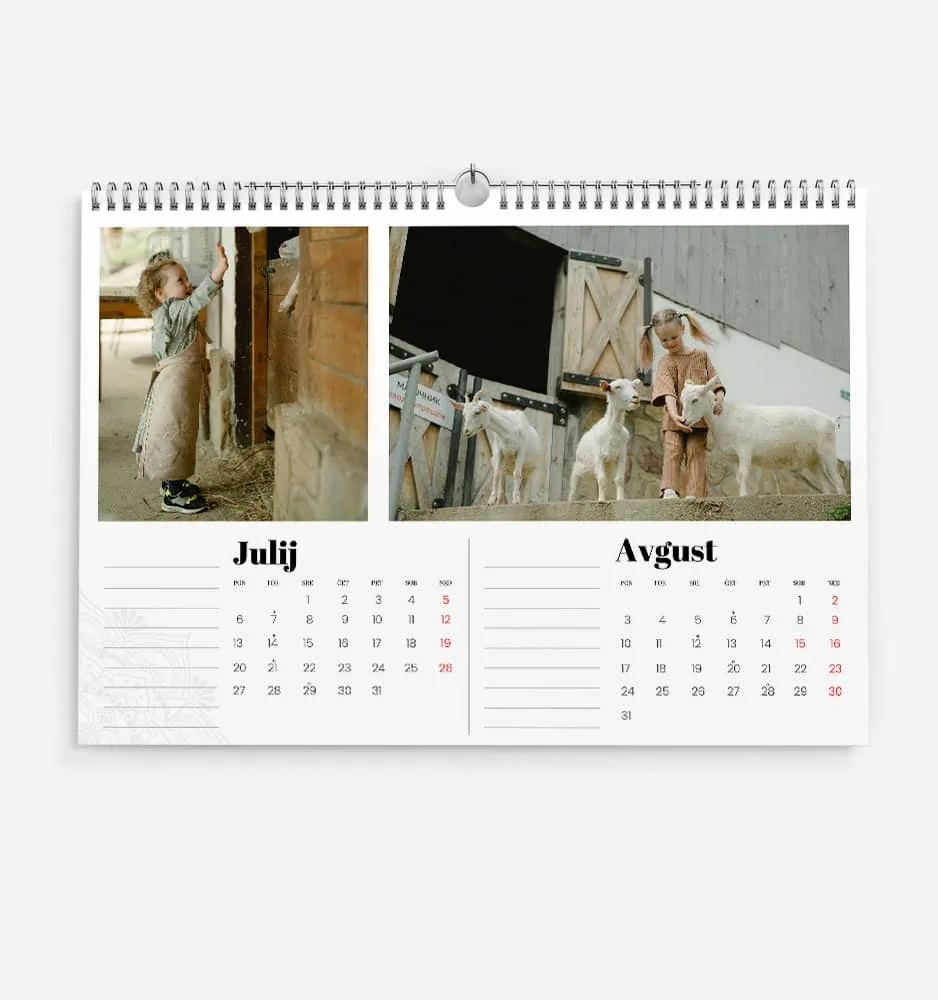 Vsak koledar v naši ponudbi je popolnoma prilagojen vam. Vanj lahko vključite svoje osebne fotografije, ki bodo skozi celo leto pripovedovale zgodbe iz vašega življenja.