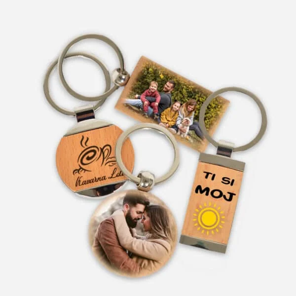 Naši obeski omogočajo personalizacijo po meri s tiskanjem besedila, logotipa ali ilustracije oz. fotografije na površino lesa. Alternativno pa ponujamo tudi možnost graviranja poljubne grafike, a v kolikor se odločite za ta način opremljanja obeska, nas prosim kontaktirajte na: design@foto-gm.si. Obesek lahko popolnoma prilagodimo vašim željam.