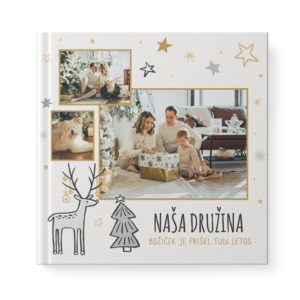 Pri oblikovanju imate proste roke – prilagodite lahko velikost in število fotografij na vsaki strani, dodajate grafične elemente, ki jih najdete v naši bazi in po želji povečate tudi število strani.