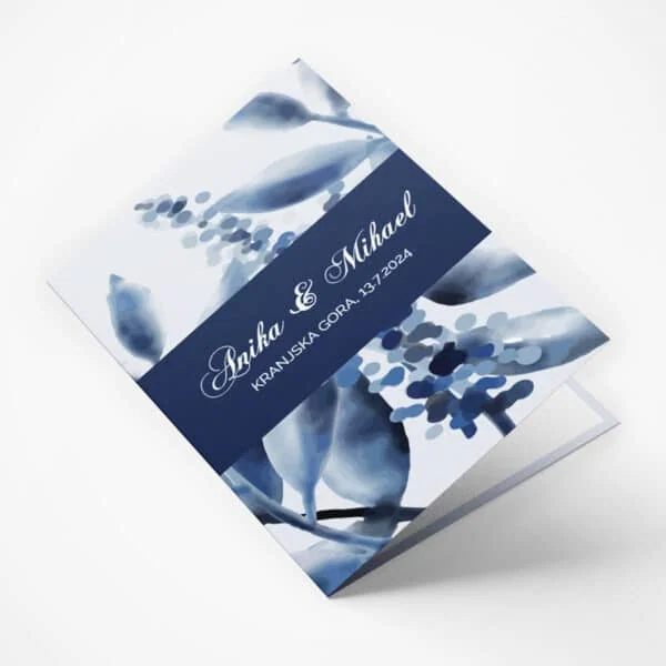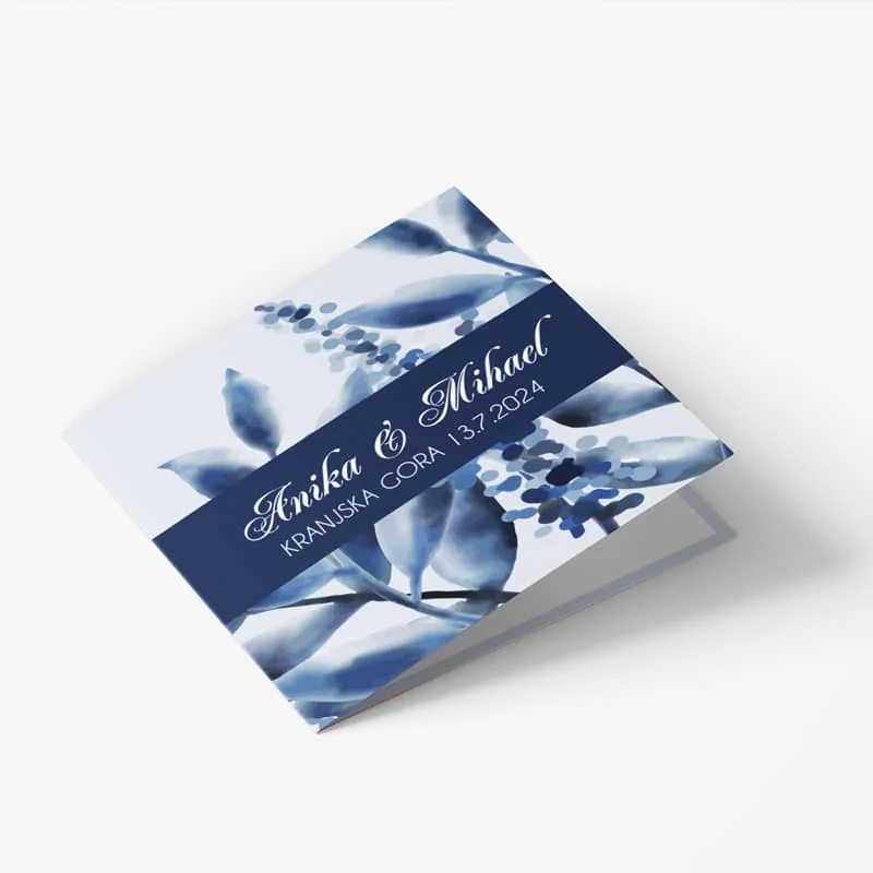 Izbrali ste voščilnico s predlogo, v modri barvi s preprostim in elegantnim dizajnom, ki je primerna za poročno vabilo ali čestitko.