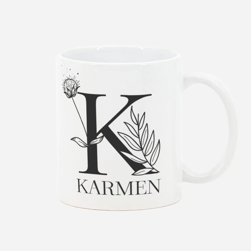 Izbrali ste lonček s predlogo monograma, ki je lahko popolno darilo za vsakogar, ne glede na priložnost. Lonček odlikuje elegantna podoba monograma na desni strabu, kjer lahko izberete začetnico imena obdarovanca. Na voljo je osem različnih oblik monogramov, od preprostih in modernih do bolj klasičnih in okrašenih, kar omogoča popolno prilagoditev glede na stil osebe, ki jo želite razveseliti. Pod monogramom je možno dodati tudi ime prejemnika, kar lončku doda še bolj osebno noto.