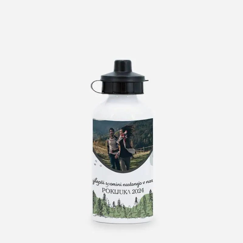 In tu je pika na i! Naša aluminijasta steklenica je prava platno za izražanje vaše kreativnosti. Odtisnemo lahko vašo najljubšo fotografijo, ilustracijo ali logotip, kar jo naredi edinstveno in posebno.