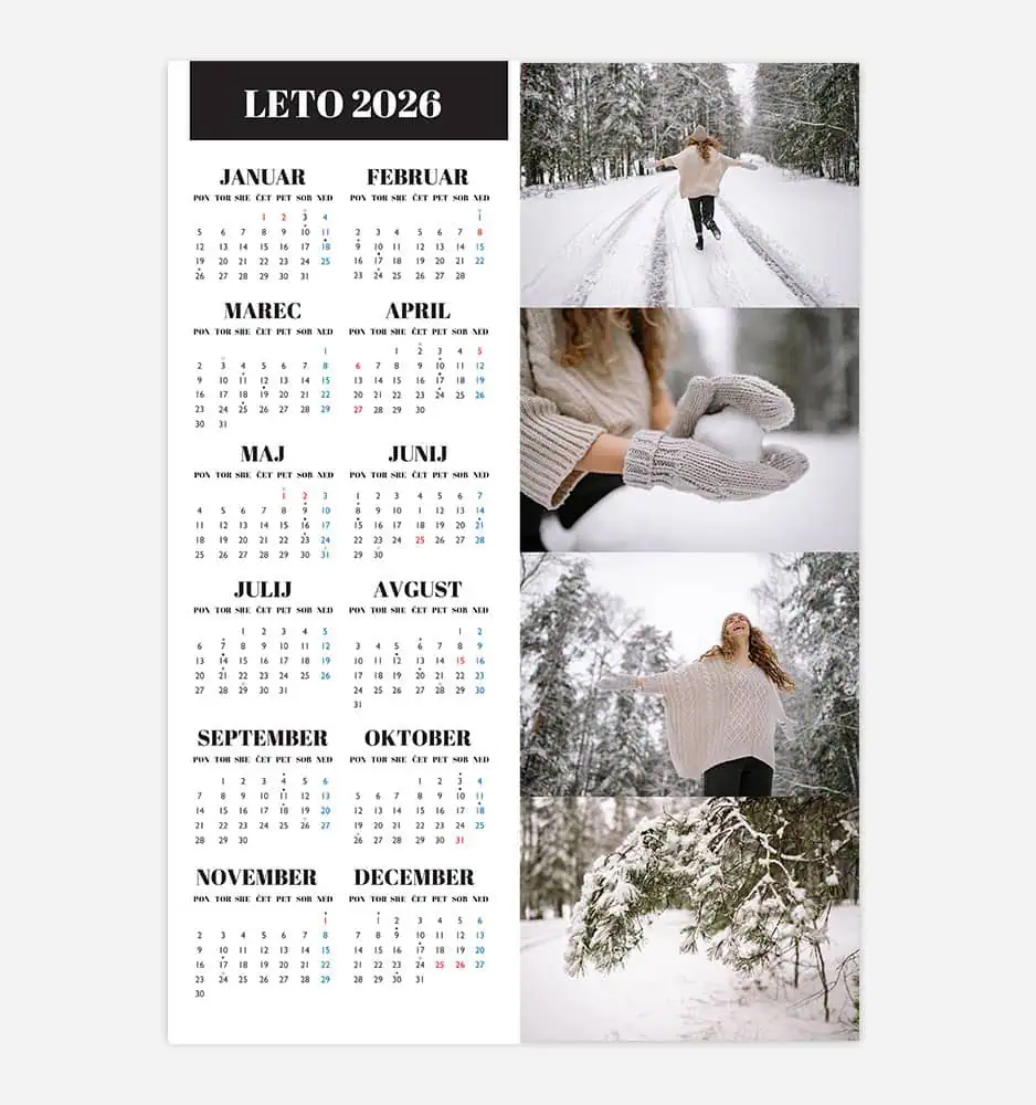 Kompakten koledar, ki prikazuje celotno leto na enem samem listu.