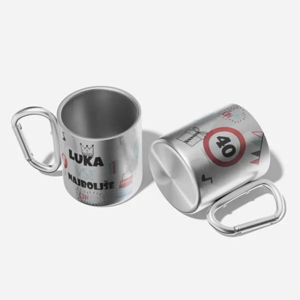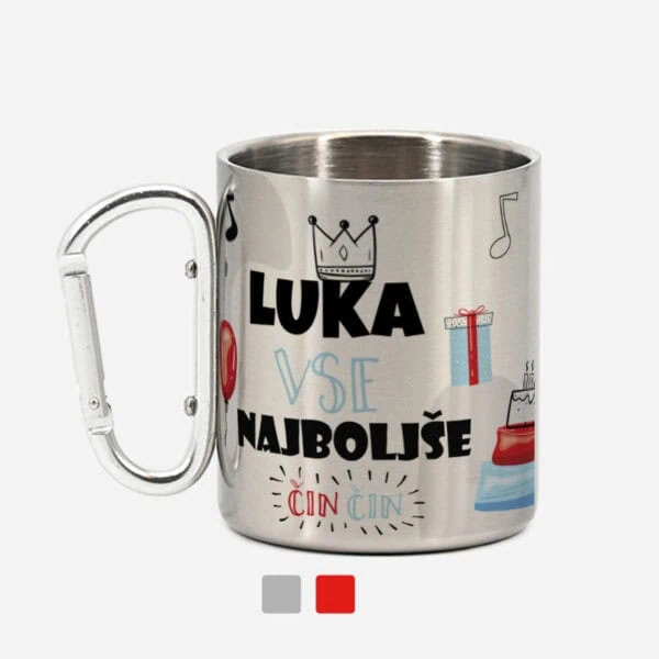 Karabinski lonček je izdelan iz visokokakovostnega nerjavečega jekla s dvojno steno, kar ohranja vaše napitke tople ali hladne dlje časa. Ta edinstven lonček ima ročaj v obliki karabinke, kar ga naredi izjemno priročnega za prenašanje in pripenjanje na vaš nahrbtnik ali pas.