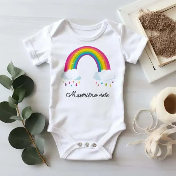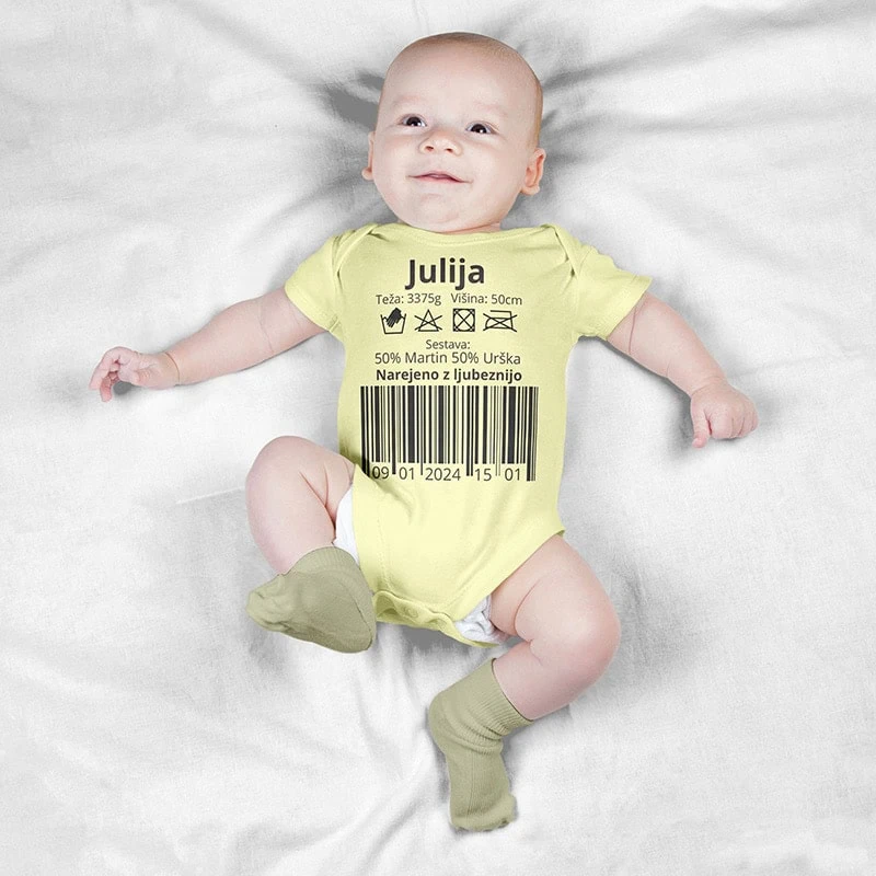 Oblecite vašega dojenčka v bodi s posebnim sporočilom in čudovitim motivom, po vaših željah. Naši otroški bodiji so opremljeni z unikatnim potiskom, ki ga lahko oblikujete sami. Izdelani so iz kvalitetnega bombaža in primerni za nežno dojenčkovo kožo.