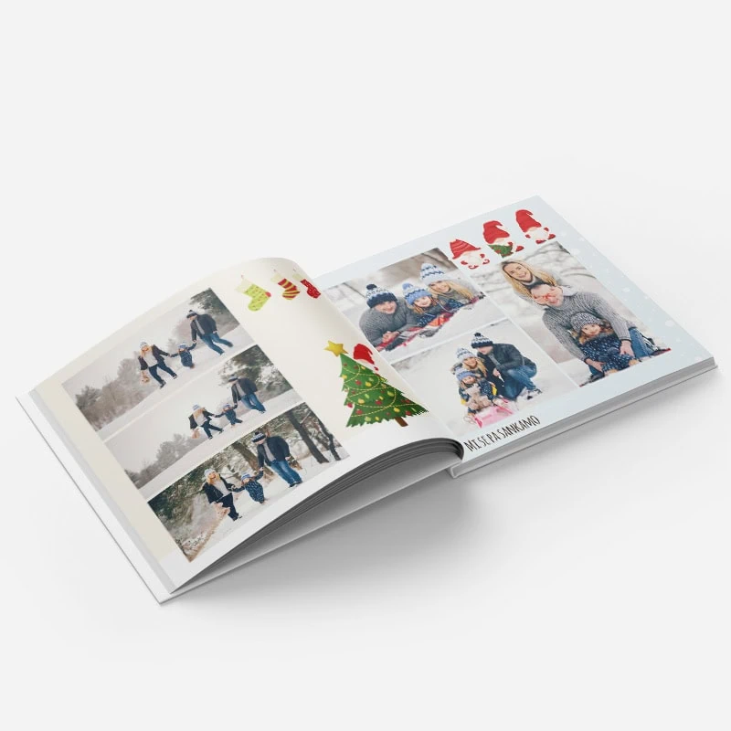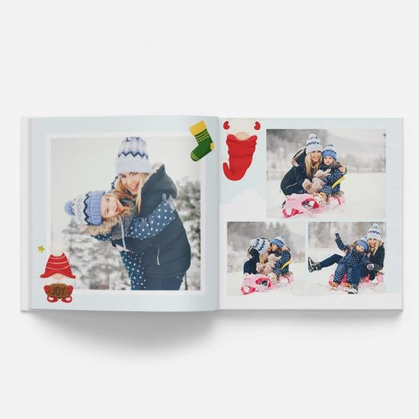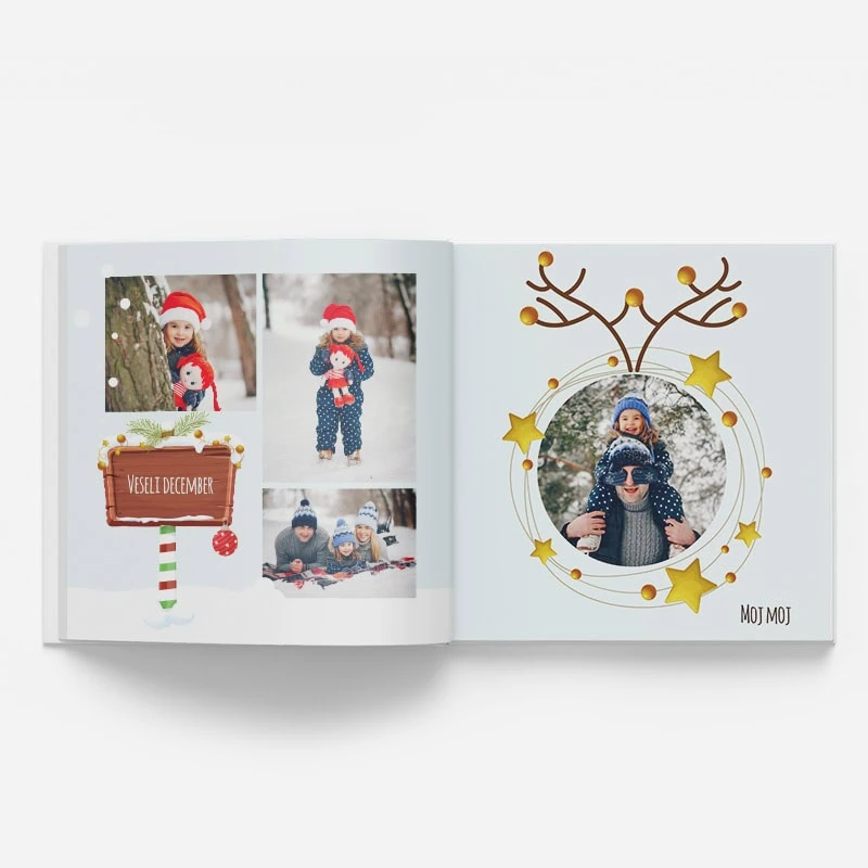 Odkrijte, kako preprosto je oblikovati fotoknjigo z izbrano predlogo. Ta predloga je posebej zasnovana za vse, ki imajo radi zimo, božič in male palčke ali škratke.