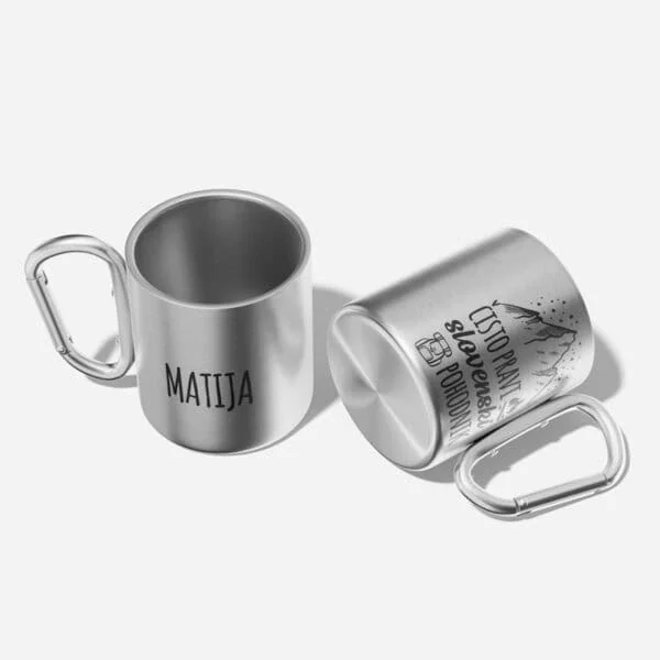 Karabinski lonček je izdelan iz visokokakovostnega nerjavečega jekla s dvojno steno, kar ohranja vaše napitke tople ali hladne dlje časa. Ta edinstven lonček ima ročaj v obliki karabinke, kar ga naredi izjemno priročnega za prenašanje in pripenjanje na vaš nahrbtnik ali pas.