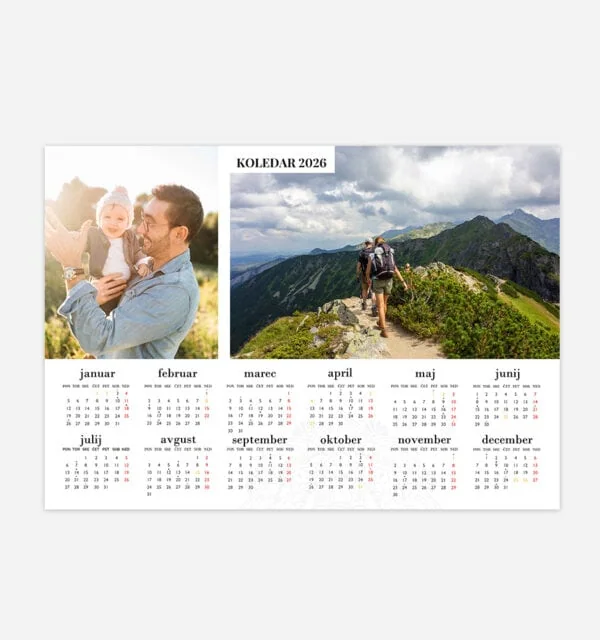 Kompakten koledar, ki prikazuje celotno leto na enem samem listu.