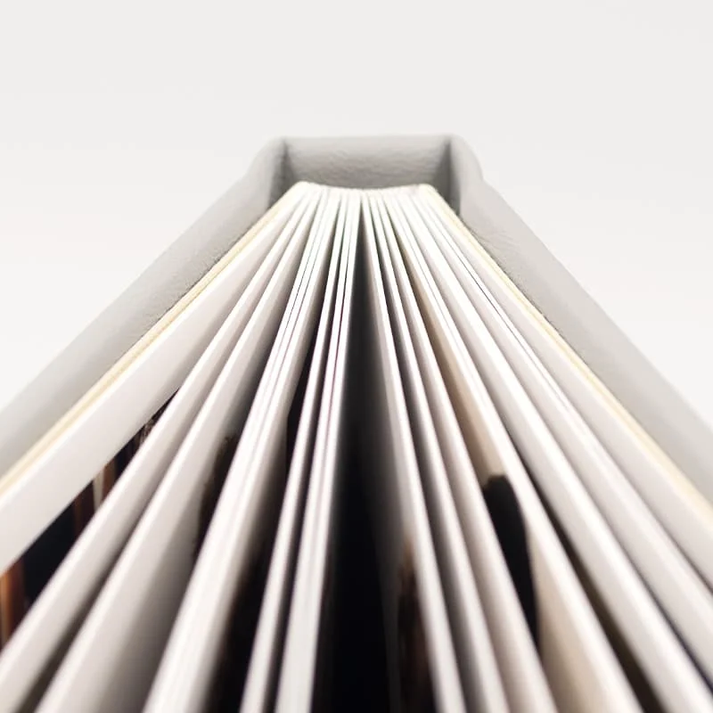 Ročno izdelana z izjemno pozornostjo do detajlov in oblikovana z mislijo na eleganco in prestiž. Platnica iz umetnega usnja prinaša prefinjenost, ki vsakemu trenutku doda pridih razkošja. Naša profesionalna fotoknjiga se ponaša s ploskovno vezavo, ki omogoča popoln prikaz vaših fotografij brez prekinitev v sredini. Posebna zaščita notranjih listov zagotavlja, da bodo vaši spomini varno shranjeni in trajno ohranjeni skozi čas.
