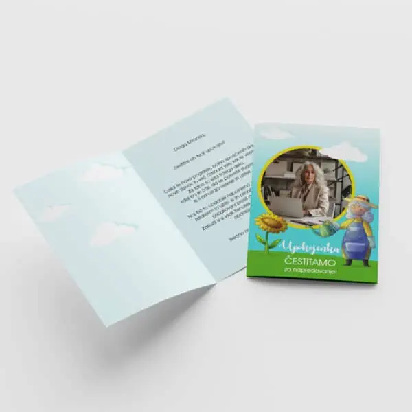 Ponujamo vam možnost individualne prilagoditve z enostranskim ali obojestranskim tiskom, kar omogoča popolno izražanje vaše kreativnosti in osebnega sloga. Poleg tega imate na voljo možnost oblikovanja po prazni predlogi ali izbire iz že pripravljenih predlog, kar zagotavlja hitro in brezhibno ustvarjanje. Naročite lahko posamezen izdelek, ali pa sete po ugodnih cenah. Možno je tudi naročilo različnih vrst kuvert.