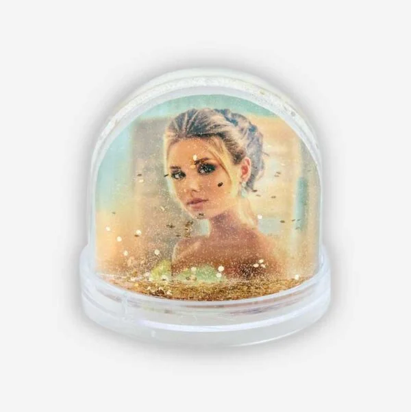 Dodajte kanček čarobnosti svojemu domu z elegantno vodno kroglo, napolnjeno z zlatimi bleščicami, ki ob tresenju ustvarijo očarljiv lesketajoč učinek. Z vstavljeno fotografijo v velikosti 6,5 x 6,2 cm je popolna dekoracija za mizo, polico ali praznično okrasitev vašega doma.