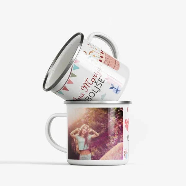 Oživite svoje spomine, izrazite svojo kreativnost ali podarite edinstveno darilo nekomu posebnemu s to emajlirano skodelico.