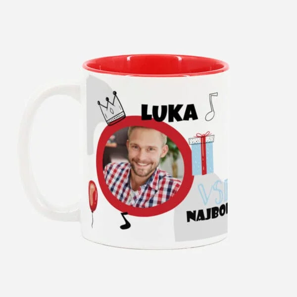Keramični lonček z barvno notranjostjo združuje možnost potiska fotografij, besedila, ilustracij, logotipov in poljubne grafike.