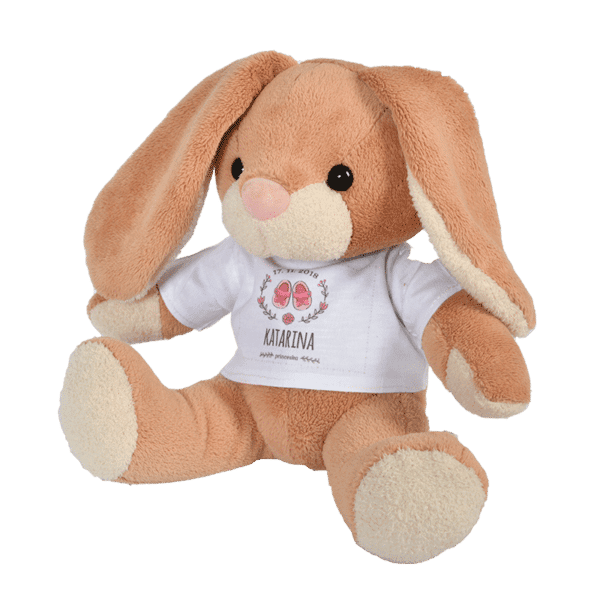 Izdelaj: Osebno prilagojeno igračko, izdelano iz 100% poliestra, opremljeno s potiskano majico po vašem izboru. Igračka v sedečem položaju meri 220 mm.